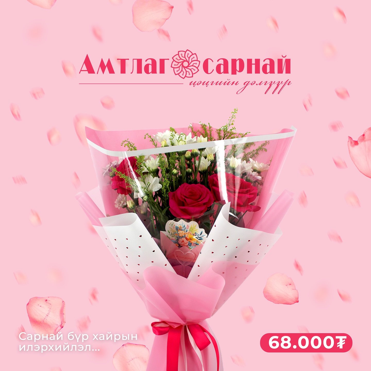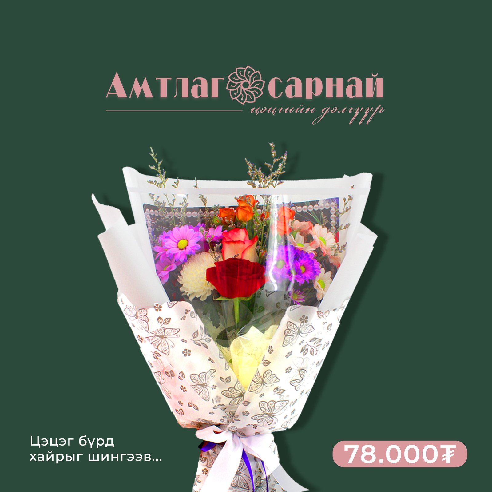 “Амтлаг сарнай” брэнд нь миний дизайны системийг нь боловсруулсан хоёр дахь дэлгүүр билээ. Постерууд нь нэгдмэл визуал хэл, орчин үеийн минимал хэв маягийг баримтлан бүтээгдсэн. Эдгээр постерууд нь брэндийн өнгө, типографи, дүрслэлийн элементүүдийг уялдуулан ашиглаж, дэлгүүрийн орчны уур амьсгал, хэрэглэгчийн туршлагыг дэмжих зорилготой.